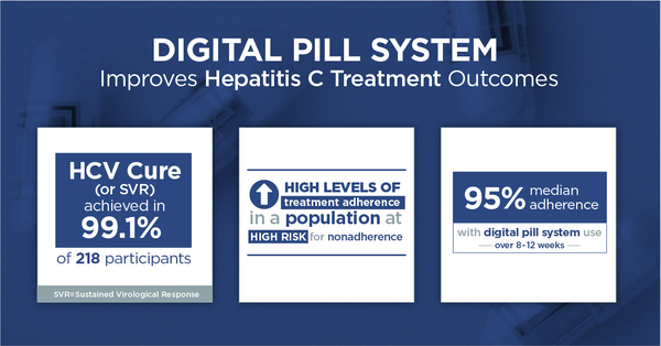 A study conducted between August 2017 and April 2019 with 288 participants for hepatitis C virus (HCV) treatment evaluated the impact of a digital medicine program (DMP) on medication adherence (Proteus Digital Health) in a population at risk for nonadherence.